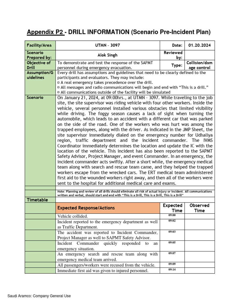 EMERGENCY RESPONSE DRILL SCENARIO COLLISION & DAMAGE CONTROL (MBTC