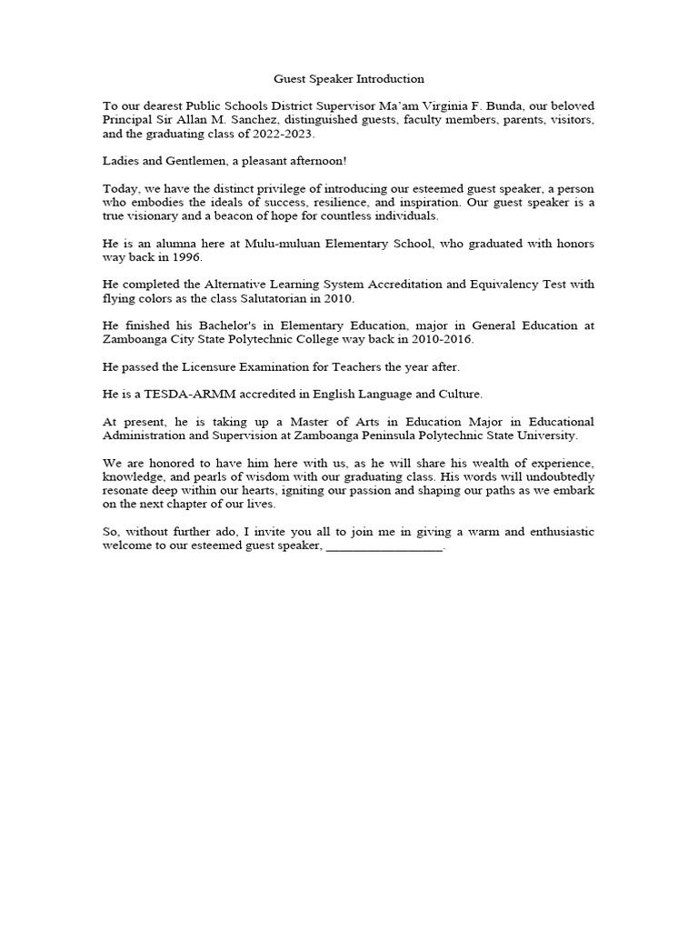 Introducing A Guest Speaker Template Introduction Speech williamsonga.us