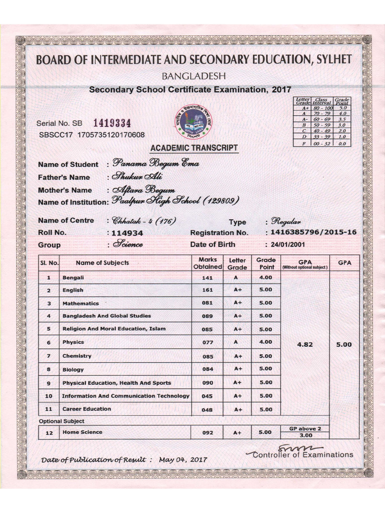 SSC Marksheet PDF